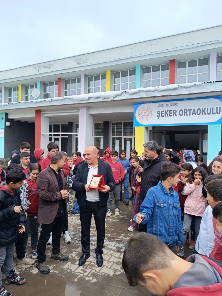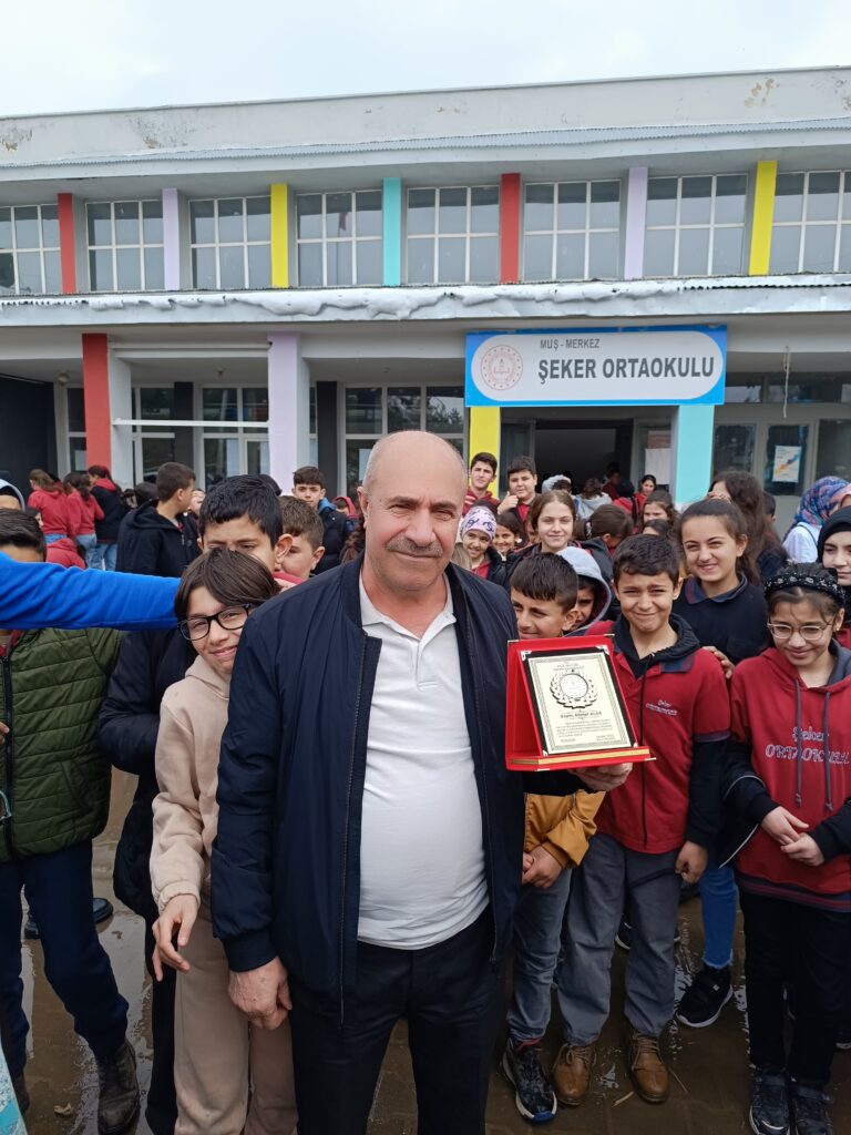 Muş Şeker Ortaokulu’nda 34 yıl boyunca memur olarak görev yapan Hacı Ahmet Alas, emekliliğe ayrıldı. Öğrenciler, sevilen personel için unutulmaz bir sürpriz hazırladı. Okulda düzenlenen veda töreninde Alas, alkışlar eşliğinde uğurlandı.Duygu dolu anların yaşandığı törende, Okul Müdürü Serdar Koç, Hacı Ahmet Alas’a plaket takdim ederek, uzun yıllar süren özverili çalışmaları için teşekkür etti. Öğrenciler de Alas’ı unutmadı ve ona sevgilerini göstermek için büyük bir çaba sarf etti.Hacı Ahmet Alas, yaptığı konuşmada, okulda geçirdiği yılların kendisi için çok kıymetli olduğunu belirterek, öğrencilerin ve meslektaşlarının sevgisinin kalbinde her zaman yer alacağını ifade etti.
