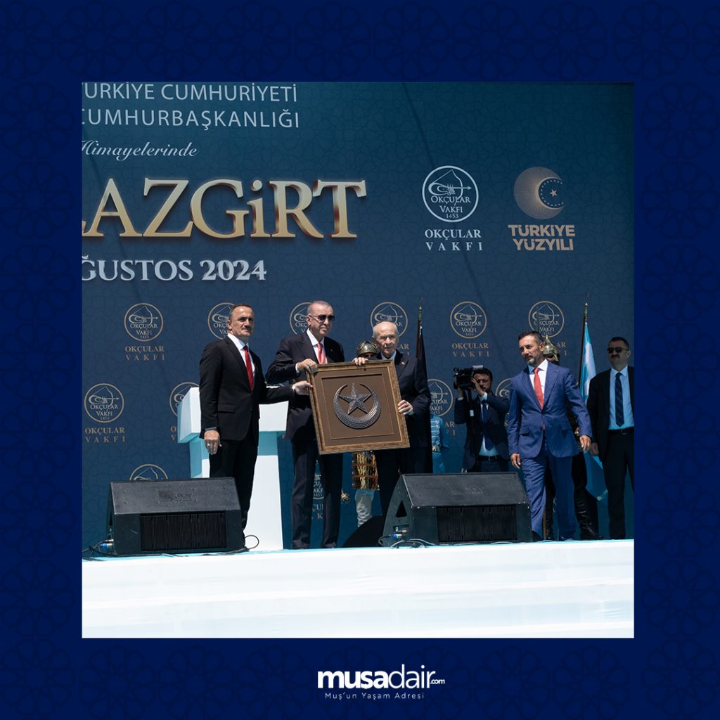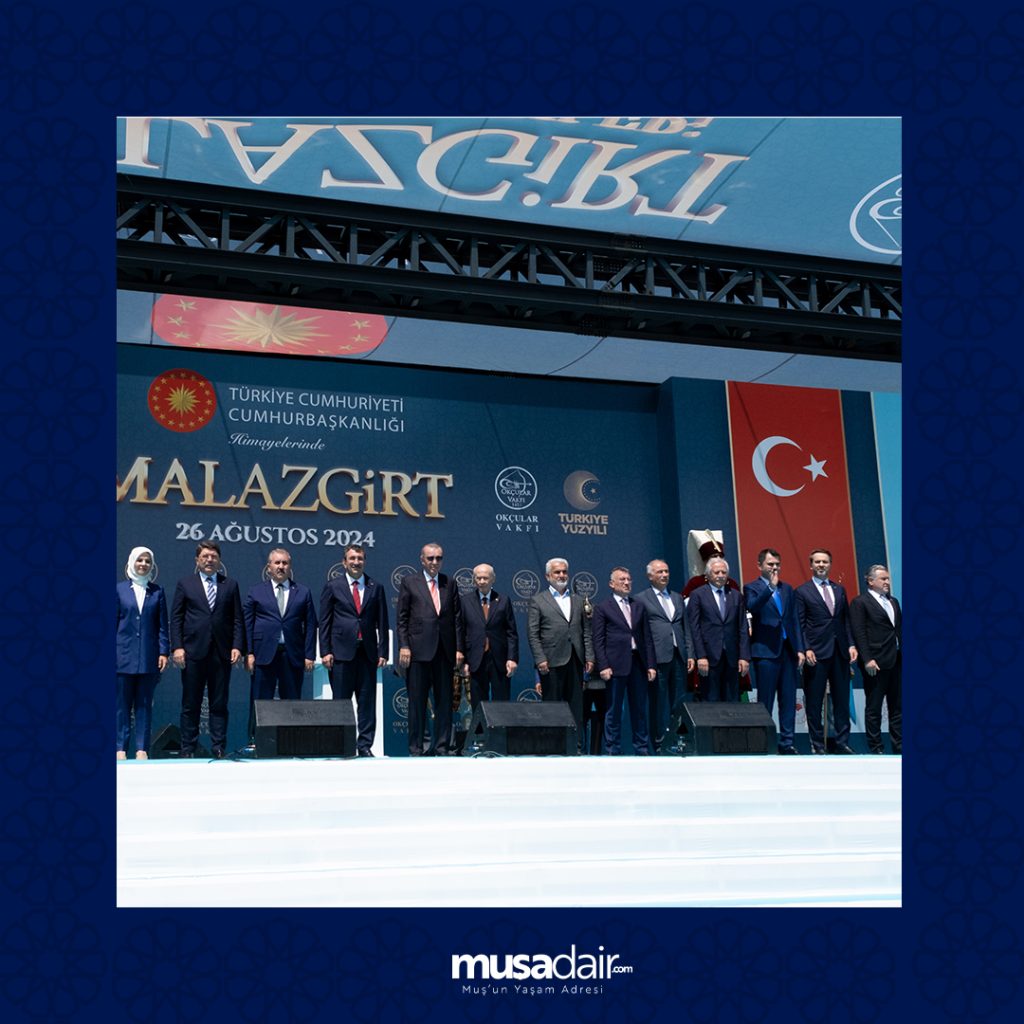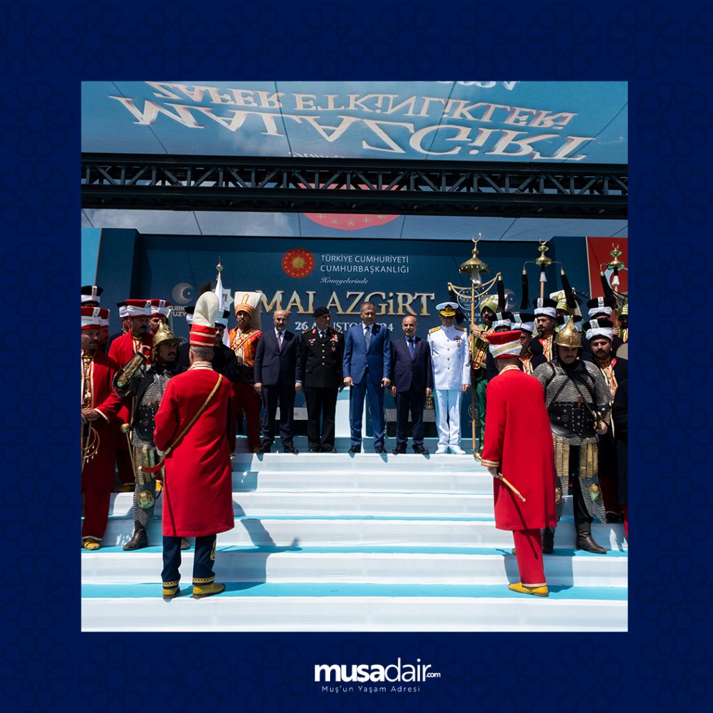 Cumhurbaşkanı Recep Tayyip Erdoğan, Malazgirt Zaferi’nin 953. Yıl Dönümü Kutlama Programı’nda yaptığı konuşmada, “Bir cuma sabahı, semaya karşı, Malazgirt’te 54 bin er, bestelediler en güzel marşı: Allahu ekber, Allahu ekber.” dizelerine atıfta bulunarak, “Bu mısralara ilham veren o günkü imanla, o günkü cesaretle, o günkü adanmışlıkla bugün yine Malazgirt’teyiz.” dedi. Sultan Alparslan ve kahraman askerlerini rahmet ve minnetle anan Erdoğan, “İlk fetih hareketlerinden bugüne kadar ezan susmasın, bayrak inmesin, ocak sönmesin diye, milletimiz huzur içinde alnı ak yaşasın diye, üzerimize yabancı gölgeler düşmesin, istiklalimize halel gelmesin diye şehit olan, gazi olan tüm kahramanlarımızı şükranla anıyorum.” ifadelerini kullandı.Erdoğan, Malazgirt Zaferi’nin milletin binlerce yıllık birlik ve dirlik şuurunun, zulme ve zalime karşı duruşunun destanlarından biri olduğunu belirterek, “Malazgirt, vahdetin ve zulme karşı kenetlenmenin zaferidir. Bundan tam 953 yıl önce Sultan Alparslan atının üzerindeyken askerine şöyle seslenmişti; ‘Eğer şehit olursam bu beyaz elbise kefenim olsun. Ben nefsimi Allah’a adadım. Benim için şehadet de muzaffer olmak da bir saadettir. Zaferi kazanırsak istikbal bizimdir.’ O büyük sultan, 953 sene önce Malazgirt Zaferiyle istikbalin bizim olacağını müjdelemişti.” dedi.Cumhurbaşkanı Erdoğan, konuşmasında Malazgirt Zaferi’nin sadece bir askeri zafer olmadığını, aynı zamanda Türk milletinin Anadolu’ya kök saldığı, yeni bir medeniyetin temelinin atıldığı tarihi bir dönüm noktası olduğunun altını çizdi. Erdoğan, Türkiye’nin geleceğini inşa ederken Malazgirt ruhundan ilham aldıklarını ve bu ruhu gelecek nesillere taşımak için kararlılıkla çalışmaya devam edeceklerini vurguladı.Erdoğan, konuşmasını şu sözlerle tamamladı: “Tarihimizin şanlı zaferlerinden biri olan Malazgirt, bizlere bir kez daha gösteriyor ki, iman, birlik ve cesaretle aşılamayacak hiçbir engel yoktur. Türkiye Yüzyılı hedeflerimize doğru ilerlerken, Malazgirt Zaferi’nin ruhuyla her türlü zorluğu aşacağımıza inanıyoruz.”