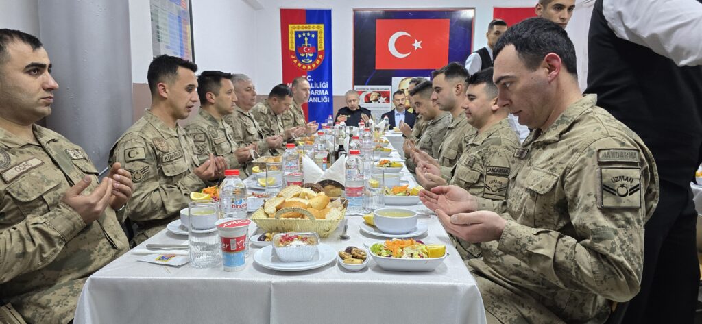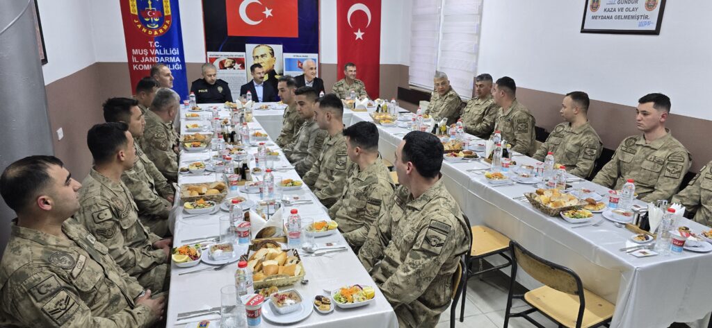 Muş Valisi Avni Çakır, Ramazan ayı dolayısıyla Akpınar Jandarma Karakolu’nu ziyaret ederek, burada görev yapan askerlerle iftar yaptı. Mehmetçiklerle aynı sofrada orucunu açan Vali Çakır, askerlerle sohbet ederek görevlerinde başarılar diledi.İftar programında konuşan Vali Çakır, vatanın güvenliği ve halkın huzuru için fedakarca görev yapan güvenlik güçlerine minnettarlığını dile getirdi. Çakır, “Sizler, gece gündüz demeden görev yaparak milletimizin huzuru için büyük bir özveriyle çalışıyorsunuz. Devletimiz her zaman sizlerin yanındadır.” ifadelerini kullandı.Mehmetçiklerle birlikte orucunu açmanın gururunu yaşadığını belirten Çakır, Ramazan ayının birlik, beraberlik ve dayanışma ruhunu güçlendirdiğini vurguladı.