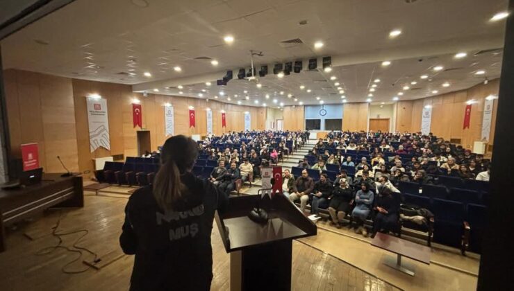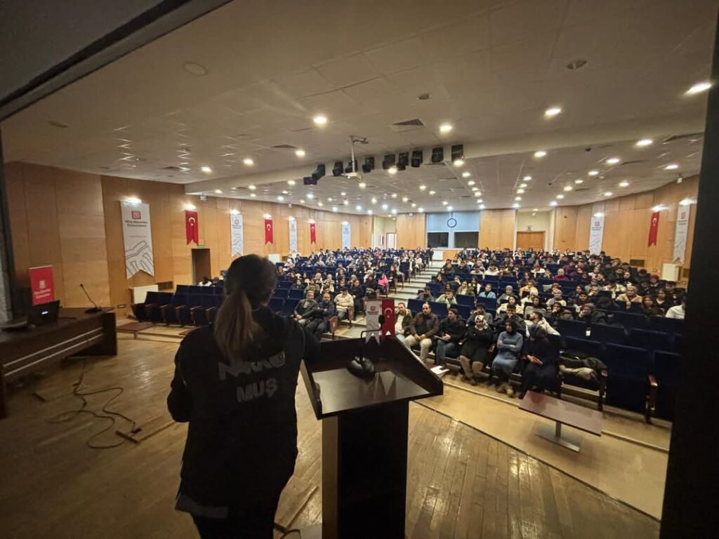 Muş Üniversitesi, bağımlılıkla mücadele konusunda farkındalık yaratmak amacıyla önemli bir etkinliğe ev sahipliği yaptı. Muş İl Sağlık Müdürlüğü, İl Emniyet Müdürlüğü, Muş Yeşilay Danışmanlık Merkezi ve üniversitemizin iş birliğiyle düzenlenen seminerler, öğrenci ve personelin bilinçlenmesini sağladı.Sağlık Kültür ve Spor Daire Başkanlığı ile Psikolojik Danışmanlık ve Rehberlik Birimi koordinasyonunda gerçekleştirilen seminerler, Psikolog Fatma Akça Yılmaz’ın öncülüğünde 3 Mart 2025 Pazartesi günü başladı. Etkinlikler; İslami İlimler Fakültesi, Mühendislik ve Mimarlık Fakültesi, Sosyal Bilimler Meslek Yüksekokulu, Spor Bilimleri Fakültesi, Teknik Bilimler Meslek Yüksekokulu, Sağlık Hizmetleri Meslek Yüksekokulu, Eğitim Fakültesi, Fen Edebiyat Fakültesi ve Uygulamalı Bilimler Fakültesi öğrencileri ve personelinin katılımıyla gerçekleştirildi.Seminerlerde, İl Sağlık Müdürlüğü’nde görevli Psikolog Ömer Çelik, İl Emniyet Müdürlüğü Narkotik Suçlarla Mücadele Şube Müdürlüğü personelleri ve Muş Yeşilay Danışmanlık Merkezi’nden Sosyal Hizmet Uzmanı Esra Hancı konuşmacı olarak yer aldı. Konuşmacılar; bağımlılıkla mücadelede kurumlar arası iş birliğinin önemi, mücadele yöntemleri, gençlerin karşılaşabileceği riskler ve sağlıklı yaşam alışkanlıklarının önemi gibi konulara değindi.Etkinliklere fakültelerin dekan yardımcıları, meslek yüksekokulu müdürleri, fakülte sekreterleri, akademik ve idari personeller ile öğrenciler yoğun ilgi gösterdi. Programın sonunda konuşmacılara teşekkür belgeleri takdim edildi. Katılımcılar, etkinliğin oldukça verimli geçtiğini belirterek, bağımlılıkla mücadelede bilinçli adımlar atılmasının önemini vurguladı.