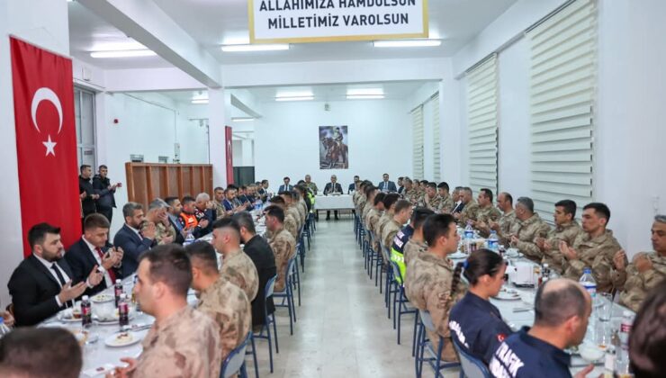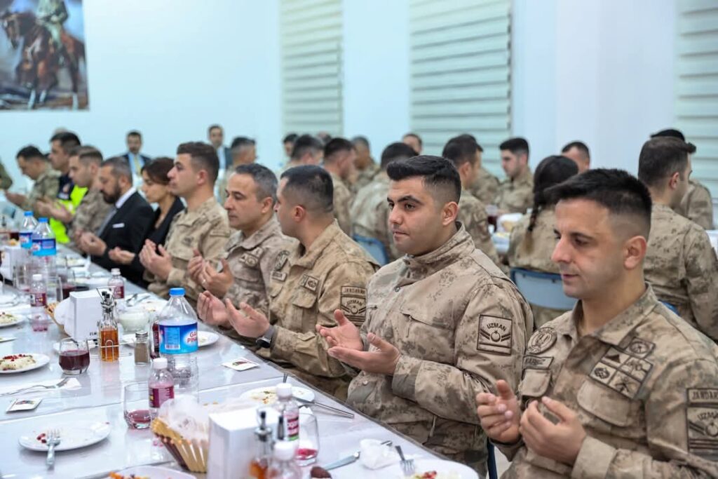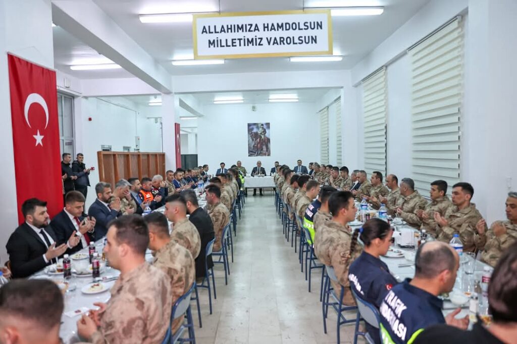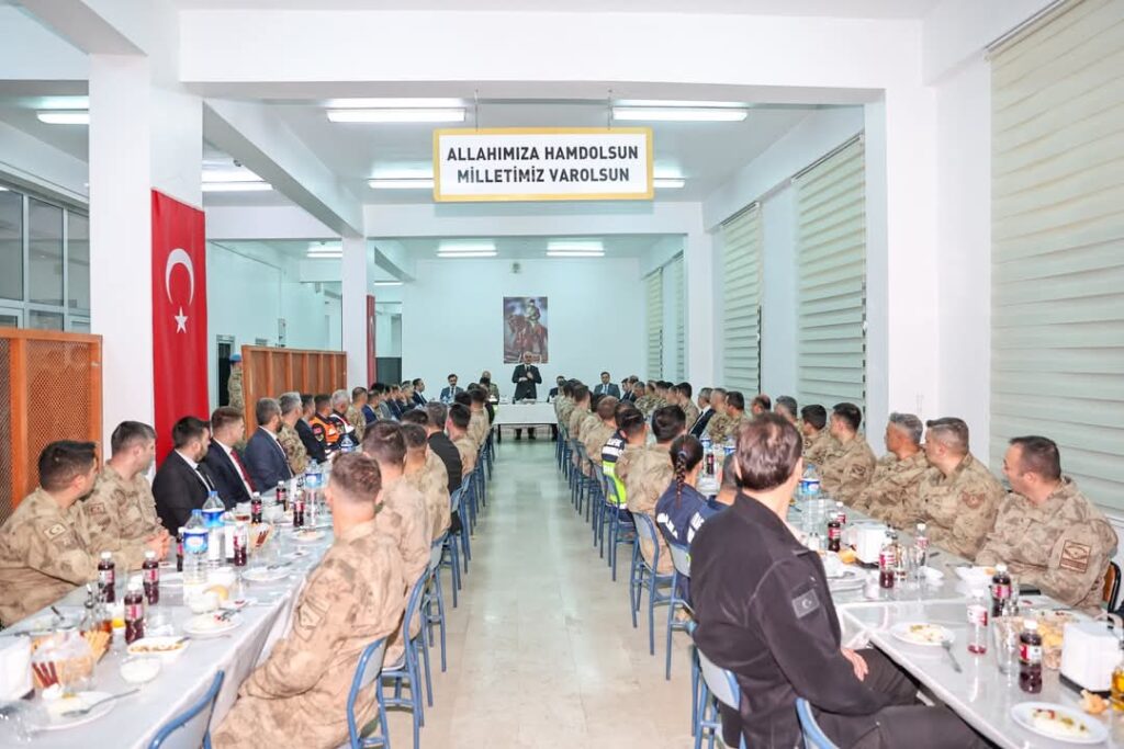 Muş Valisi Sayın Avni Çakır, İl Jandarma Komutanı Jandarma Kıdemli Albay Yılmaz Kırgel’in ev sahipliğinde düzenlenen iftar programında kahraman jandarma personeliyle bir araya geldi. İlimiz protokol üyelerinin de katıldığı iftar programında, Ramazan ayının birlik, beraberlik ve dayanışma ruhu vurgulandı.Sayın Vali Çakır, vatanımızın huzuru ve milletimizin bekası için gece gündüz demeden görev yapan kahraman jandarma personelinin Ramazan ayını tebrik ederek, onların fedakârlıklarının her zaman takdirle anıldığını belirtti. Vali Çakır, “Ülkemizin güvenliği için canla başla görev yapan tüm kahramanlarımızın mübarek Ramazan ayını kutluyor, bu vesileyle aziz şehitlerimizi rahmetle anıyorum.” dedi.Programda, güvenlik güçlerimizin üstün görev bilinci ve özverili çalışmaları için teşekkür edilirken, iftar yemeği sonrası dualar edildi.