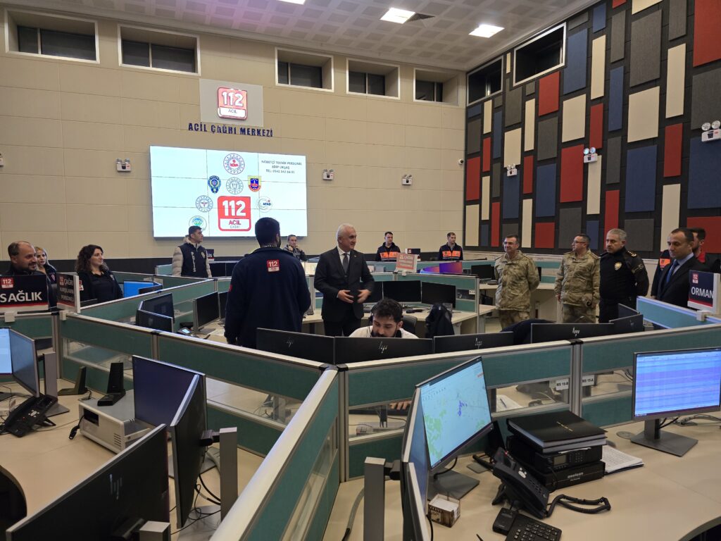 Vali Çakır, 112 Acil Çağrı Merkezi’ni de ziyaret ederek, burada görev yapan personelin yeni yılını kutladı. Çağrı karşılama süreci hakkında bilgi alan Vali Çakır, personele teşekkür ederek hayırlı görevler diledi.