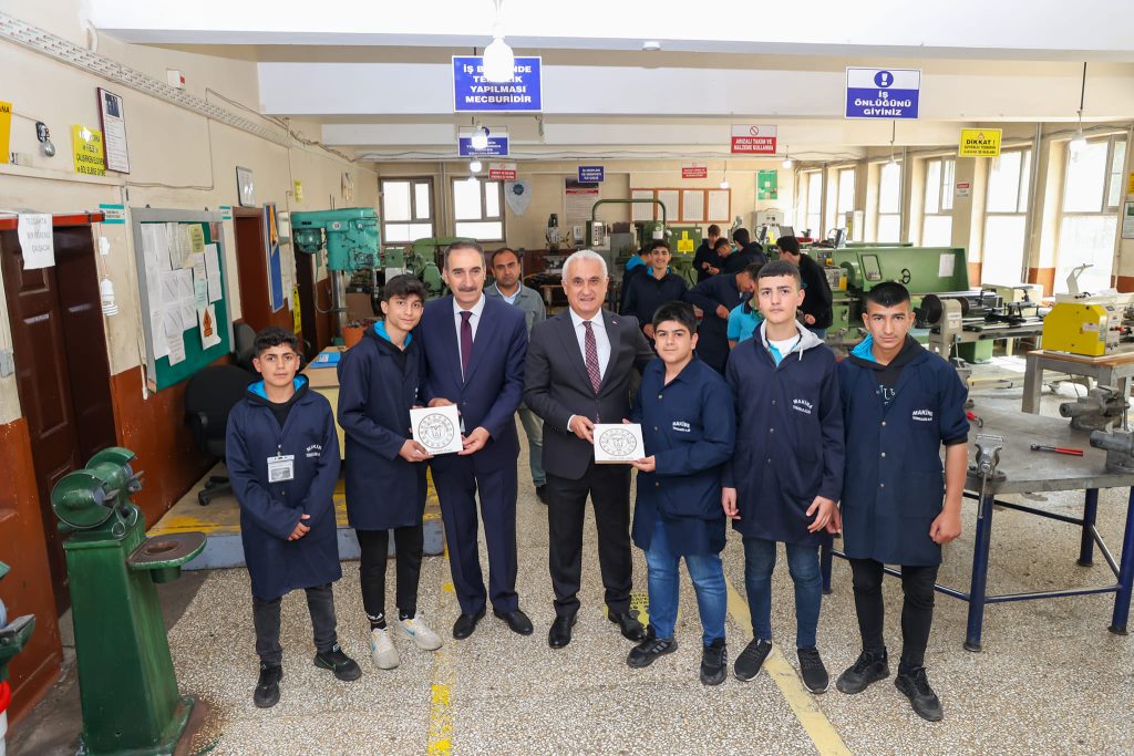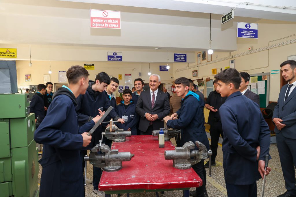 Okul bünyesinde bulunan atölyeleri de inceleyen Sayın Valimiz, burada yürütülen çalışmalar hakkında bilgi aldı. Öğrencilere eğitim hayatlarında ve mesleki çalışmalarında başarılar dileyen Sayın Valimiz, gençlerin meslek sahibi olma yolunda attıkları adımların önemine vurgu yaptı.